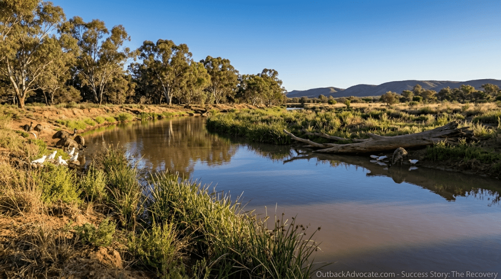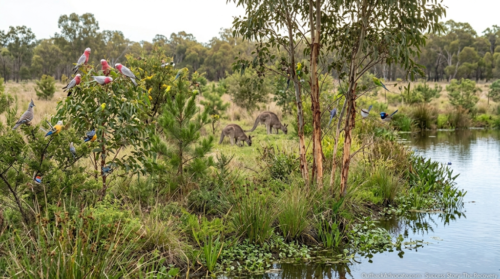 Once the pressure is removed, the bush begins to breathe. Native grasses return, and waterholes clear, allowing local wildlife to reclaim their home